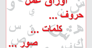الحروف الهجائية بأشكالها المختلفة وكلمات وصور عليها
