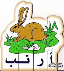 الحروف الهجائية بأشكالها المختلفة وكلمات وصور عليها