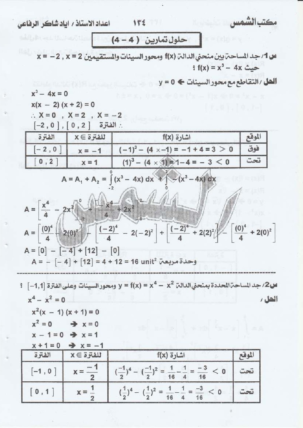 حل تمارين 4 1 التكامل للسادس الادبي مدرس الرياضيات الأستاذ حيدر الأبيض Facebook
