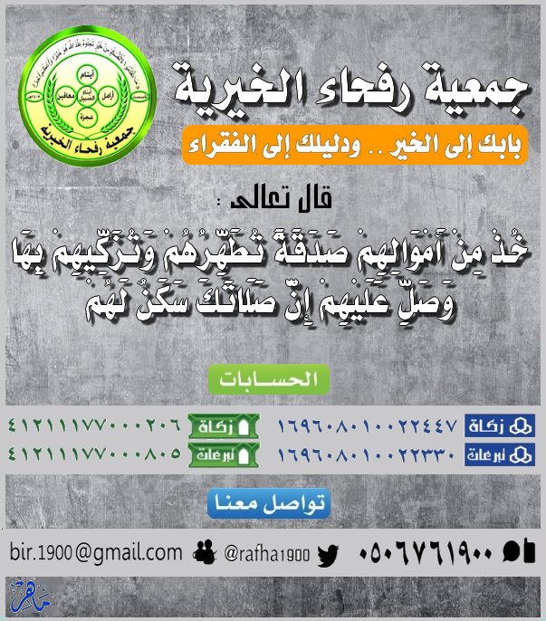 جمعية رفحاء الخيرية On Twitter خذ من أموالهم صدقة تطهرهم وتزكيهم بها وصل عليهم إن صلاتك سكن لهم Mlsd Sa Alialghafis Tanmeeah Arar
