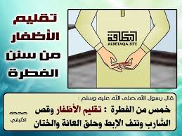 خمس من الفطرة. ق ال ر س ول الله ص ل ى الله ع ل ي ه و س ل م. ال ف ط ر ة خ م س أ و خ م س م ن ال ف ط ر ة ال خ ت ان و الا س ت ح د اد و ت ق ل يم الأ ظ ف ار.