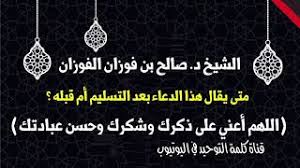 الشيخ د صالح الفوزان متى يقال هذا الدعاء اللهم أعني على ذكرك وشكرك وحسن عبادتك قبل السلام أم Youtube