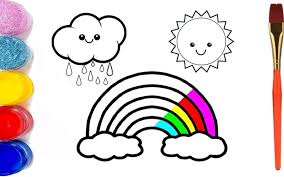 تعلم رسم قوس قزح شمس و غيم للاطفال الصغار تعليم الرسم للاطفال
