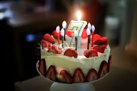 كعكة العيد ميلاد ب رقم 7 الشمعة المضاء معرض الأشكال K34152854 Fotosearch