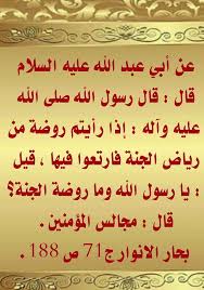 في خدمة ألإمام الحسين ع عن أبي عبد الله عليه السلام قال قال رسول الله صلى الله عليه وآله إذا رأيتم روضة من رياض الجنة فارتعوا فيها قيل