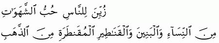 الآن يا رب حين زينتها لنا فنزلت. ز ي ن ل لن اس ح ب الش ه و ات م ن الن س اء و ال ب ن ين و ال ق ن اط ير. قال عمر بن الخطاب رضي الله عنه.