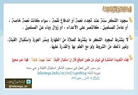 أماني الشهري Twitterren Islamqa Ar سجود الشكر سنة عند تجدد نعمة أو اندفاع نقمة ولا يشترط لسجود الشكر استقبال القبلة ننبه على الخطأ Http T Co Obpevamo5a