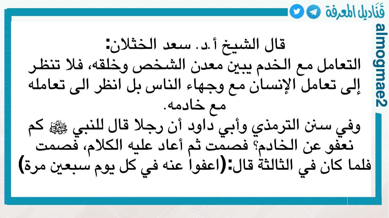 ق ناديل الم ع ر فة Ar Twitter التعامل مع الخدم ي بين معدن الشخص وخ ل قه