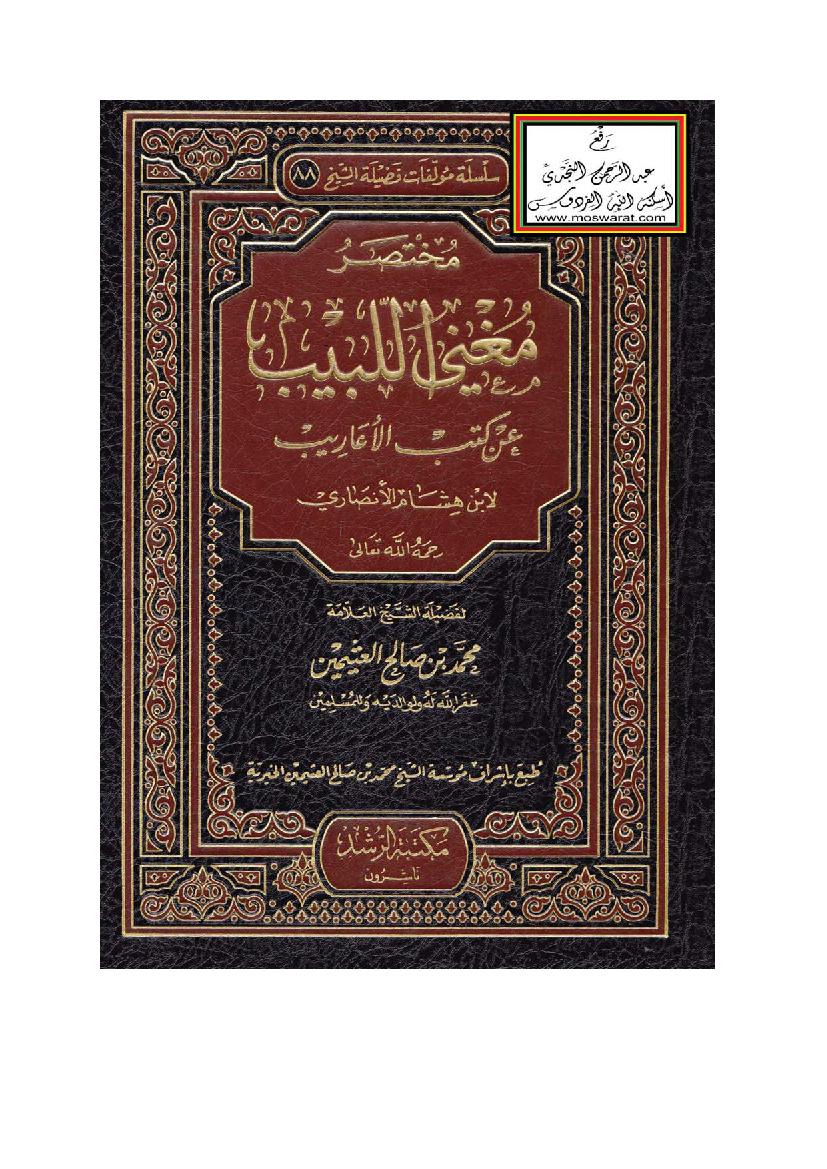 تحميل كتاب مختصر مغني اللبيب عن كتب الأعاريب لابن هشام الأنصاري رحمه الله Pdf مكتبة نور لتحميل الكتب الإلكترونية