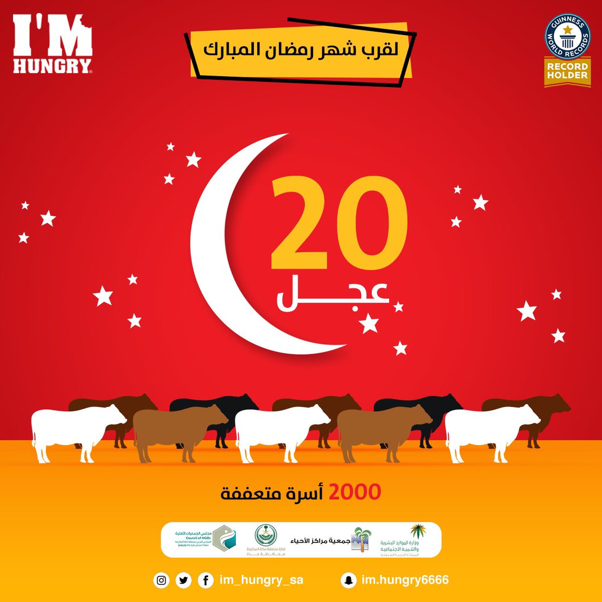 I Mhungryاي ام هنجري On Twitter لقرب رمضان المبارك تتقدم شركة الاطعمة الطازجة المحدودة Imhungry بتقديم ٢٠ عجل للإسر المتعففة بواقع كيس لحم طازج بعدد ٢٠٠٠ أسرة بالتعاون مع مراكز الاحياء لايصالها لمستحقيها